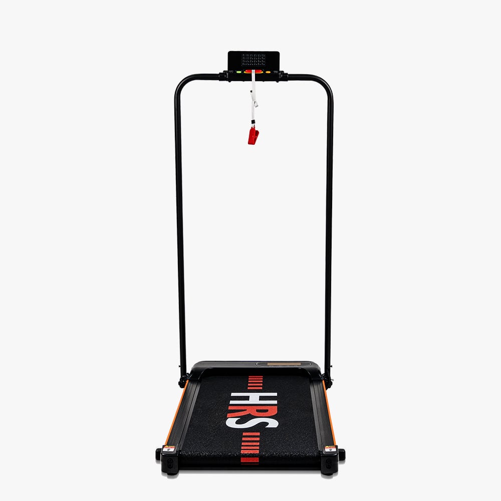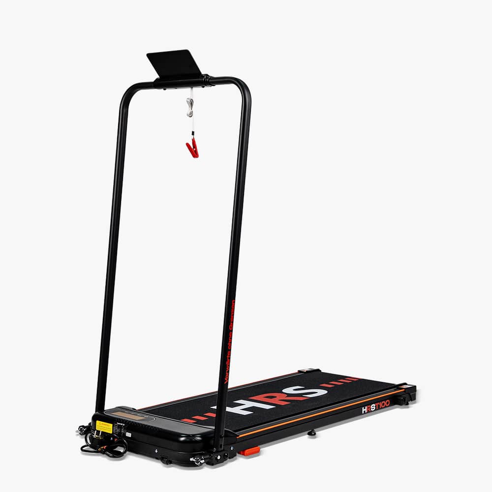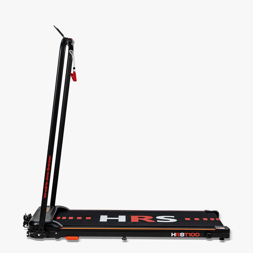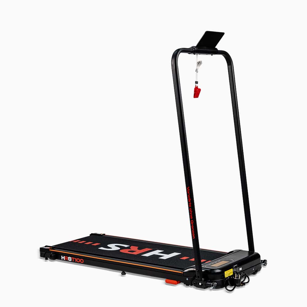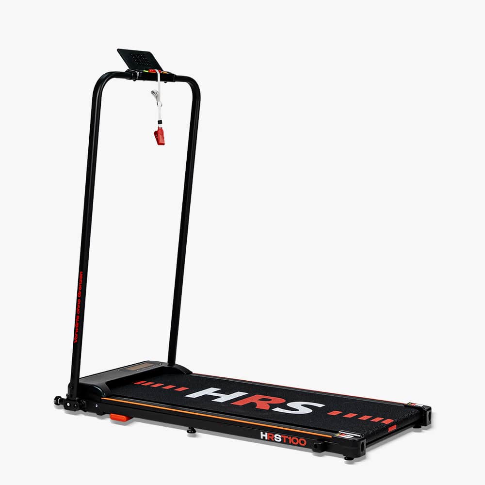 HRS T100 — компактна домашня доріжка для щоденних кардіо-занять. Поєднує просте керування, тиху роботу та надійні характеристики для тренувань у зручний час просто вдома.