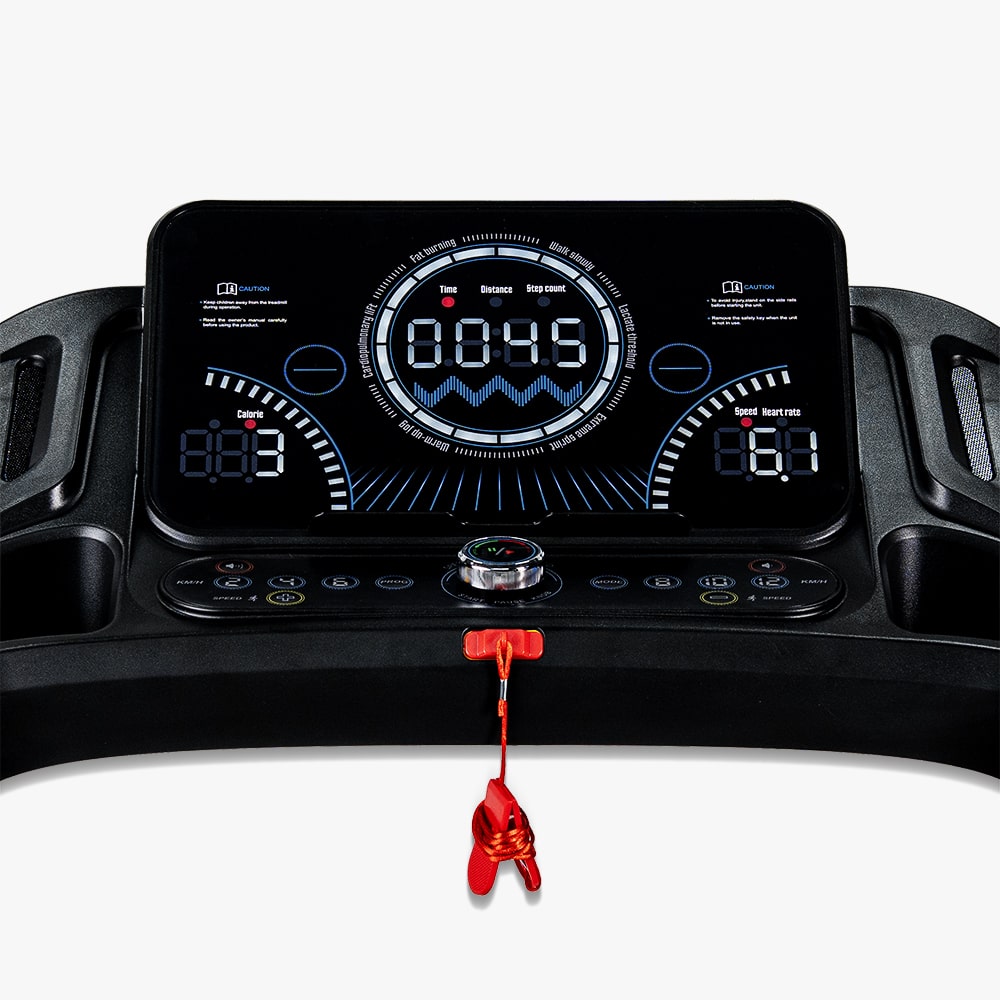 Одна з головних «родзинок» HRS T600 — це великий, стильний LED-дисплей, який відображає всі ключові параметри: швидкість, дистанцію, час, калорії та пульс. Інтуїтивний інтерфейс робить тренування не лише ефективними, а й візуально приємними.