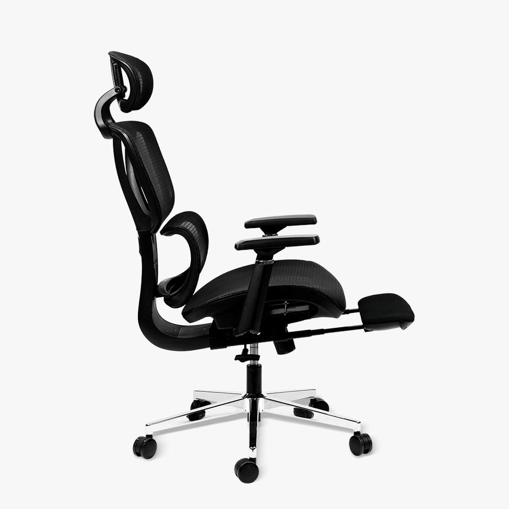 Висувна підніжка (Footrest): Інтегрована під сидінням підставка дозволяє повністю випрямити ноги. У поєднанні з відкинутою спинкою це перетворює крісло на повноцінний шезлонг для короткого відпочинку між завданнями.