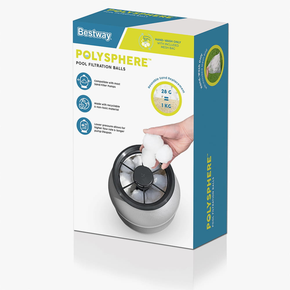 Забудьте про важкі мішки з піском! Polysphere — це інноваційний фільтруючий матеріал, який робить догляд за басейном простішим, економнішим та ефективнішим. Ці легкі кульки з 100% поліетилену здатні затримувати навіть найдрібніші частки бруду.