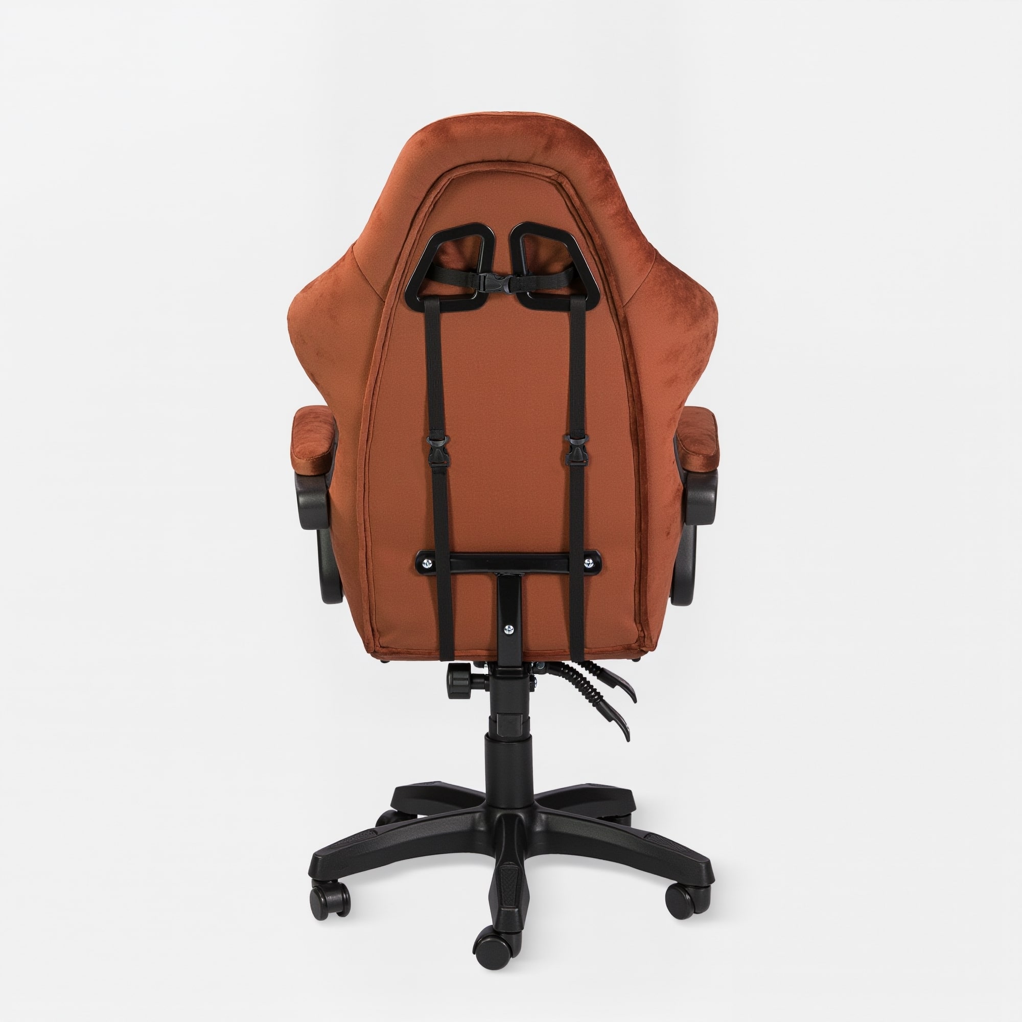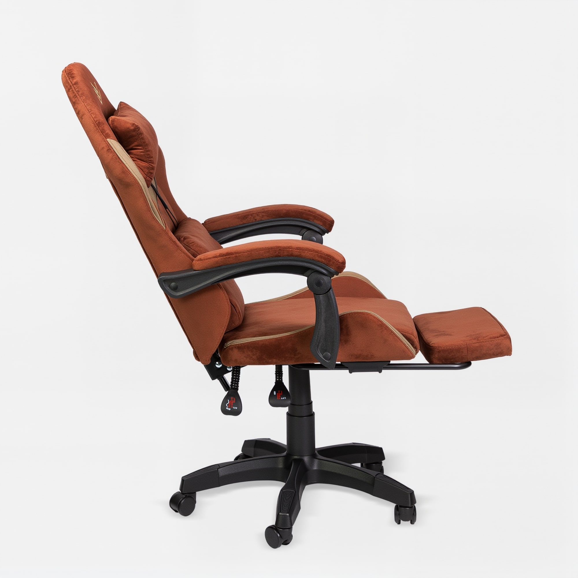 Virgo X27 Vortex Coffe — крісло для щоденного геймінгу та роботи за ПК. Зносостійке велюрове покриття AlcaTouch™ (наш преміум-велюр із «оксамитовим» відчуттям) дарує приємну тактильність і вигляд «як із салону спорткара». Нахил спинки 90–135° дозволяє швидко змінювати посадку від робочої до релакс-пози, а висувна підставка для ніг додає комфорту під час перерв і перегляду контенту. Посилена база, плавний хід роликів і розрахунок на до 120 кг — надійність щодня.