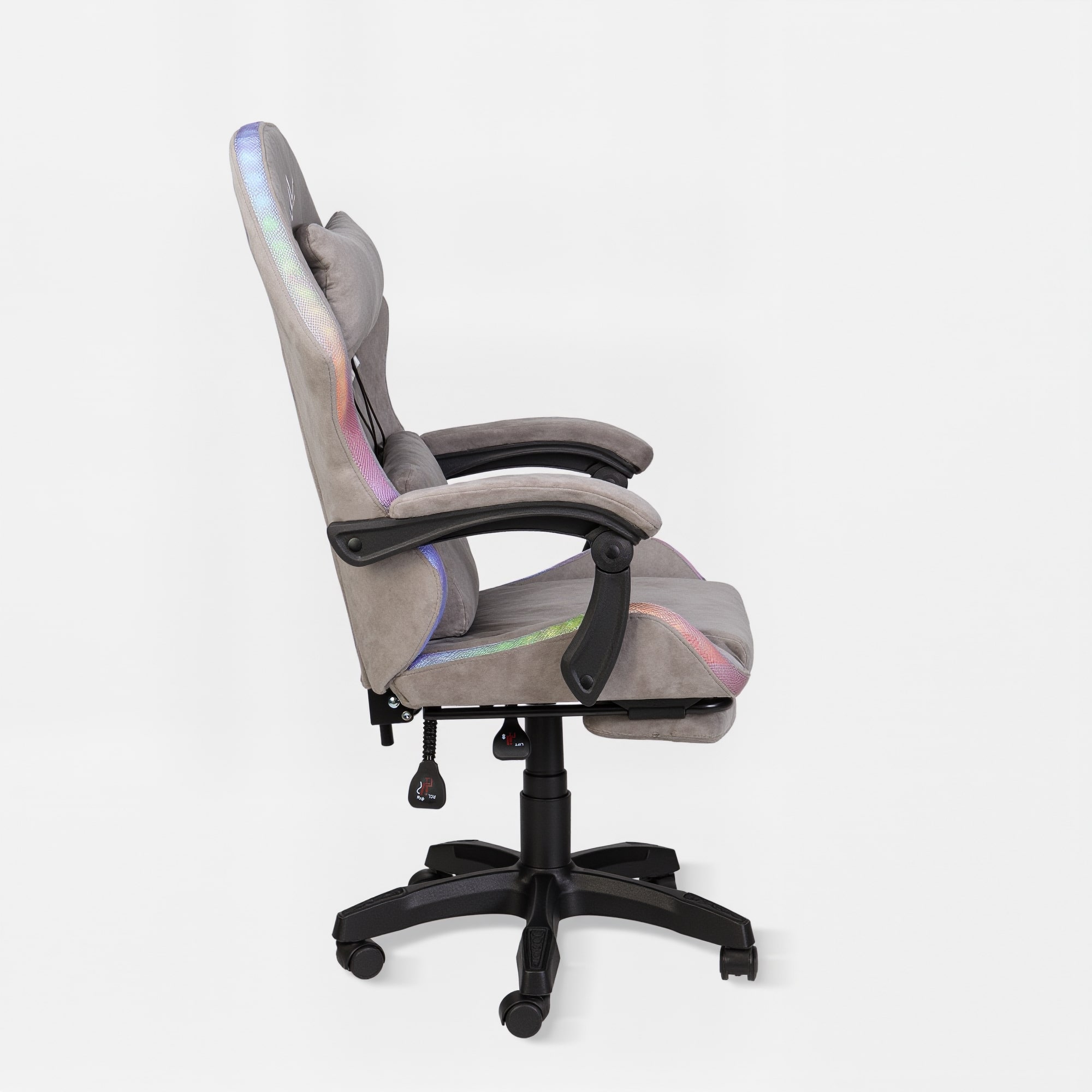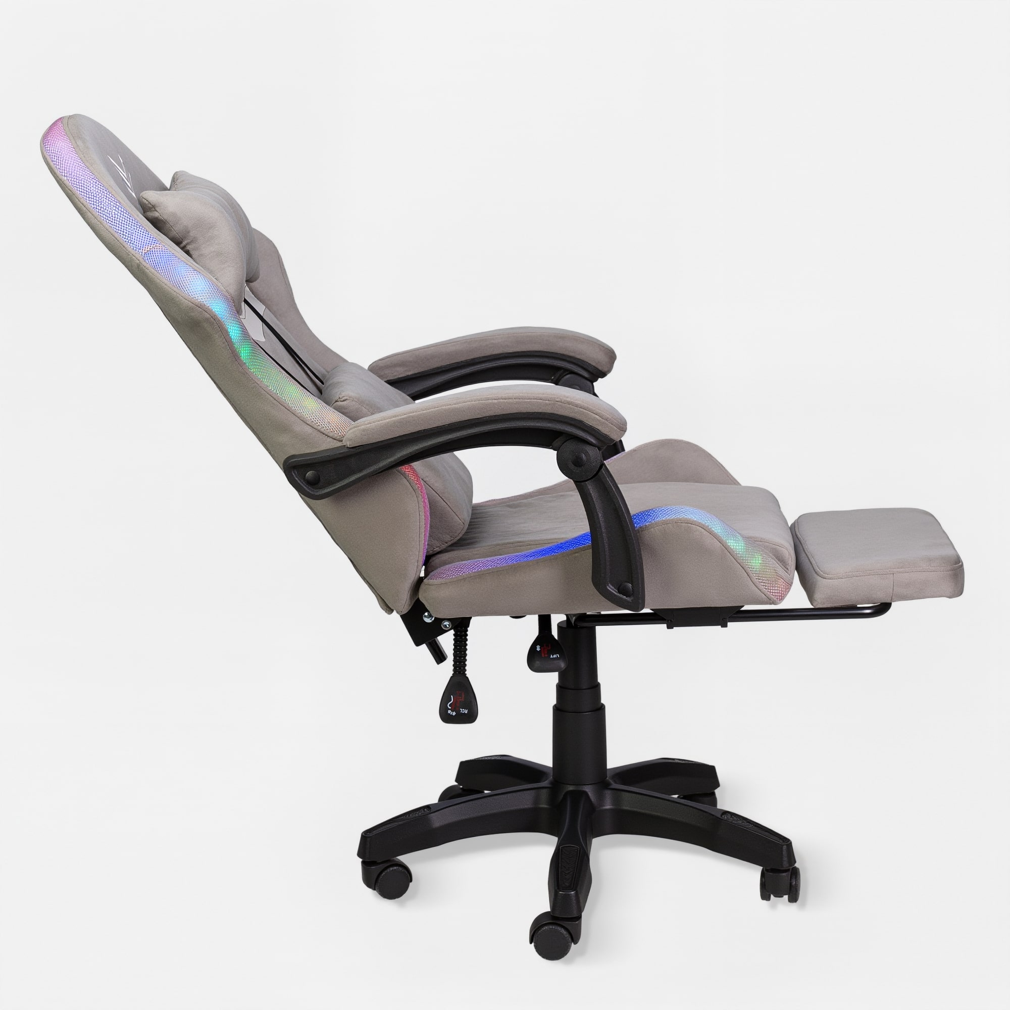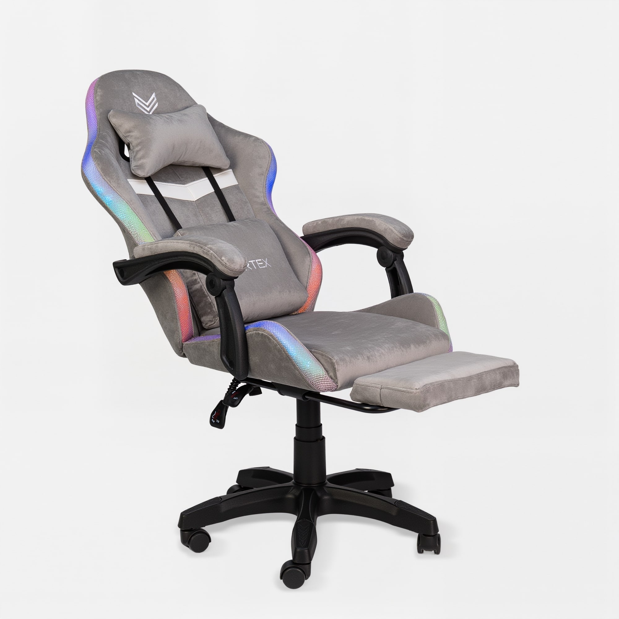 Virgo X28 Vortex LED — крісло для щоденного геймінгу й роботи за ПК. Зносостійке велюрове покриття AlcaTouch™ дає «оксамитовий» дотик і преміальний вигляд, а спинка з діапазоном 90–135° дозволяє швидко переходити від фокусної посадки до релаксу. Фірмова фішка моделі — LED-підсвічування з 15+ режимами, яке створює атмосферу гри й виглядає ефектно на стрімах. Для повного відпочинку є висувна підставка для ніг, а посилена база з навантаженням до 120 кг і тихі подвійні коліщата забезпечують надійність і плавний хід щодня
