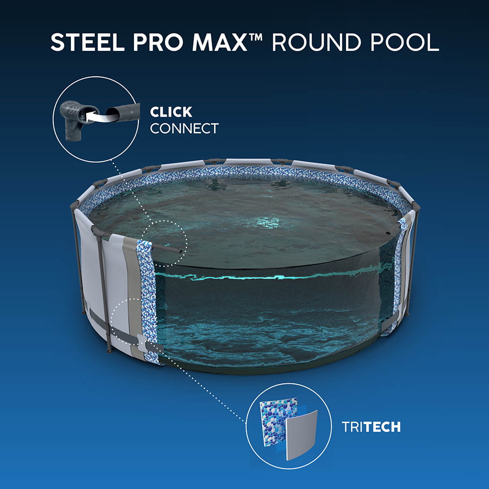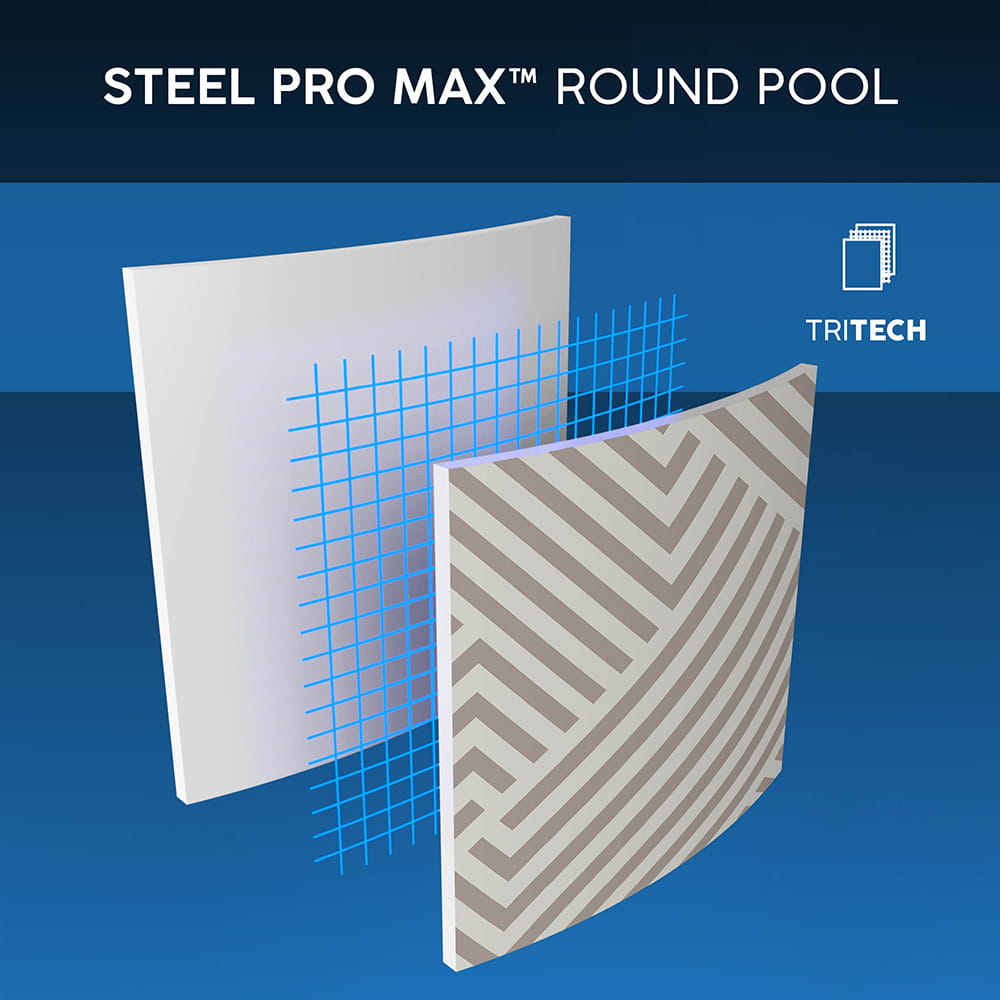 Надміцний лайнер Tritech®: Стінки чаші виготовлені з тришарового посиленого матеріалу. Технічні випробування доводять: Tritech на 15% стійкіший до розривів, на 33% до розтягування та на 83% стійкіший до проколів, ніж стандартний ПВХ. Це гарантує цілісність басейну сезон за сезоном.