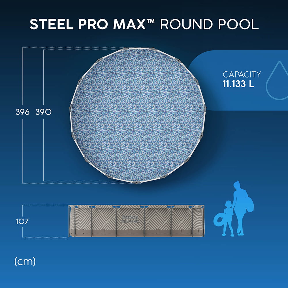 Каркасний басейн Bestway 561FY Steel Pro MAX™ (396 х 107 см) — Ексклюзивний набір із сонцезахисним навісом та повною комплектацією