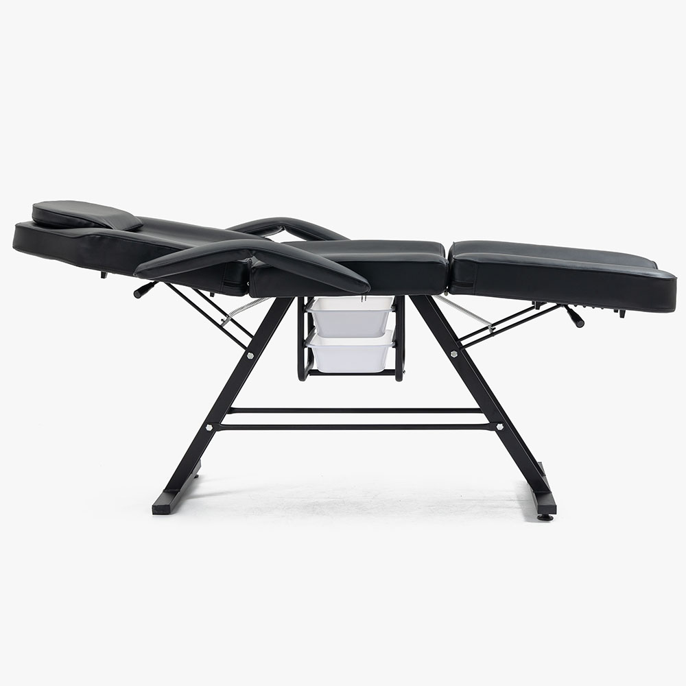 Кушетка має можливість регулювання положення спинки, сидіння і підніжок, що дає гнучкість для різних процедур. Вона адаптується під потреби майстра – від косметології до масажу або догляду за шкірою.