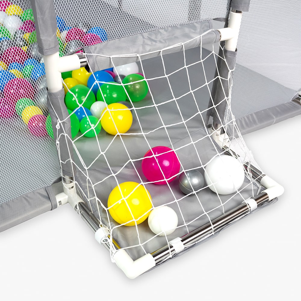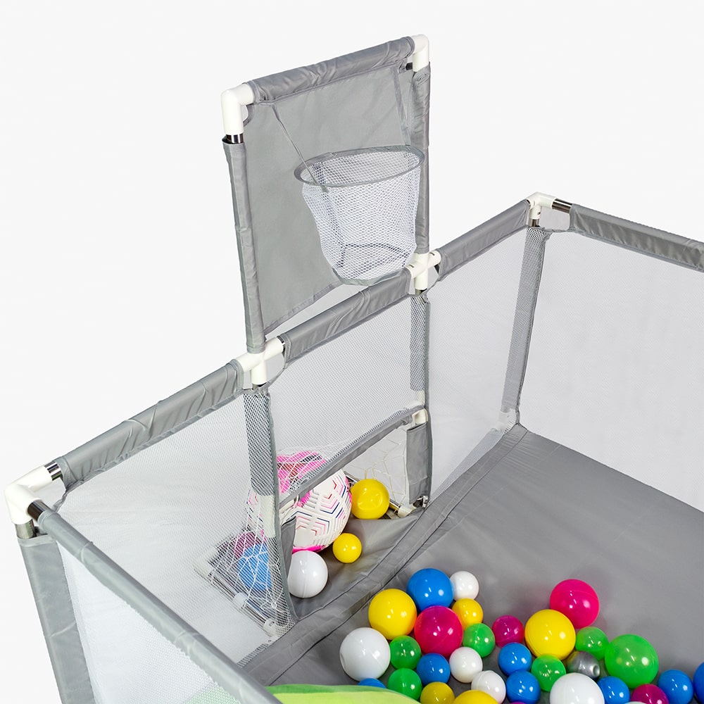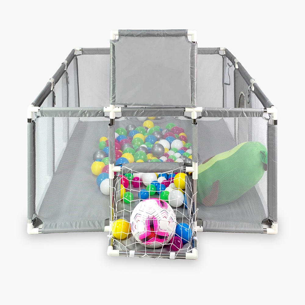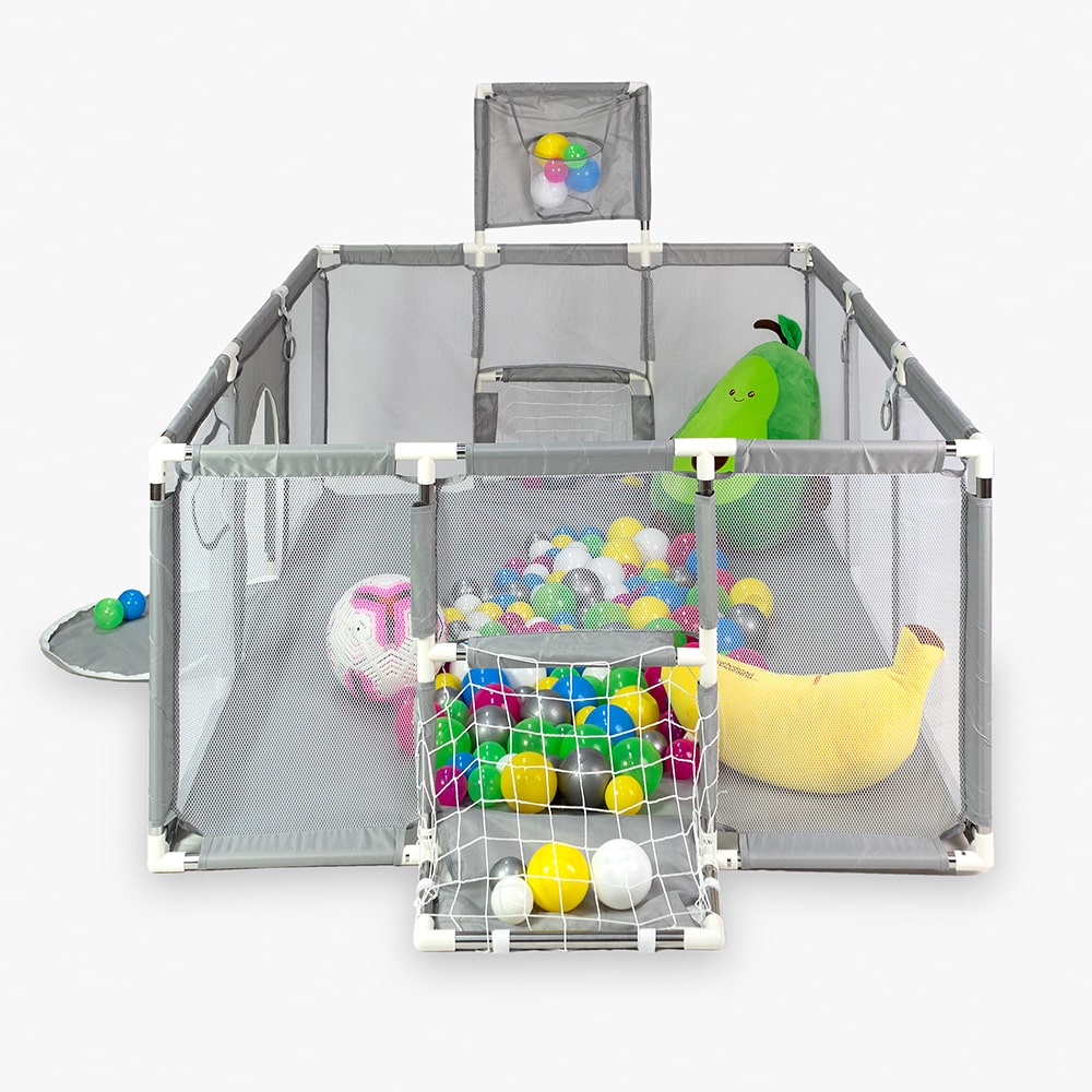 Ця ігрова площадка легко трансформується: можна змінювати конфігурацію, виносити бортики або робити відкриті зони. Завдяки цьому манеж підходить для дітей різного віку й дозволяє адаптувати простір під поточні потреби.