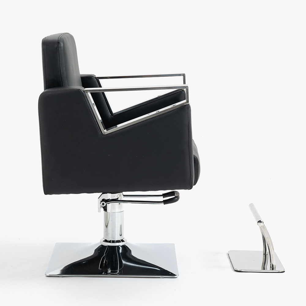 Крісло має м’яке сидіння, ергономічну спинку й підголівник, що забезпечують зручне положення під час стрижки, фарбування чи укладки. Підніжка додає стійкості й комфорт під час процедур.