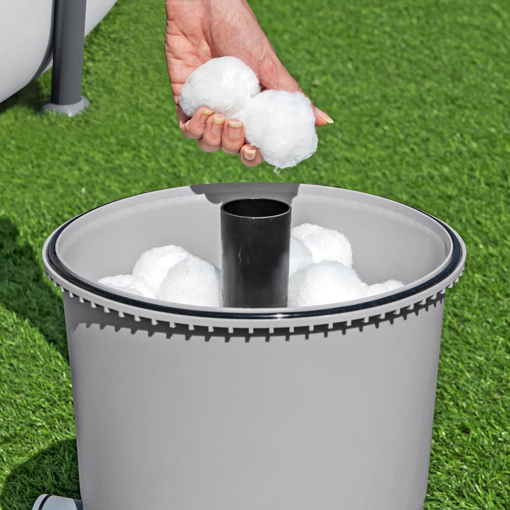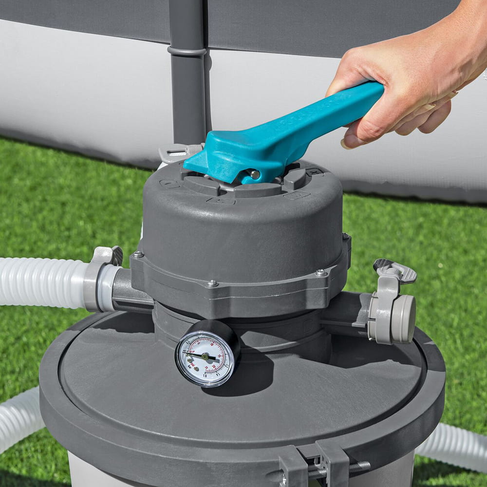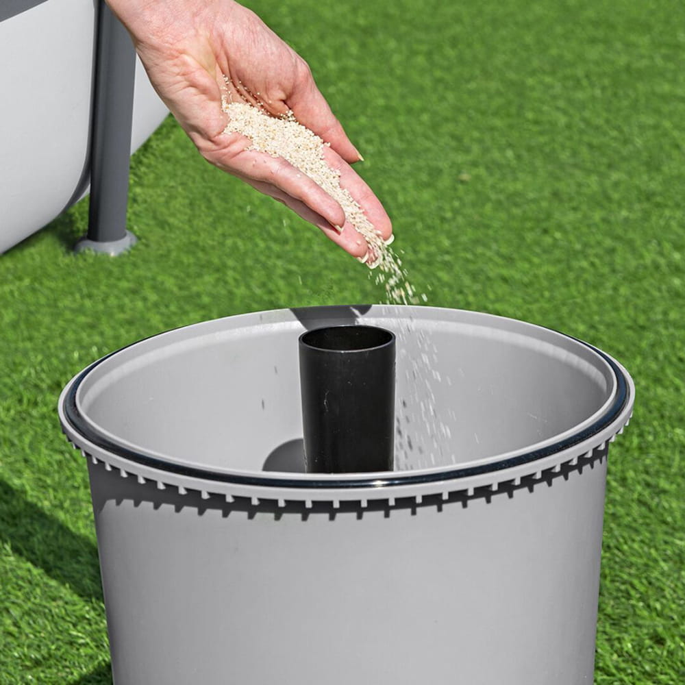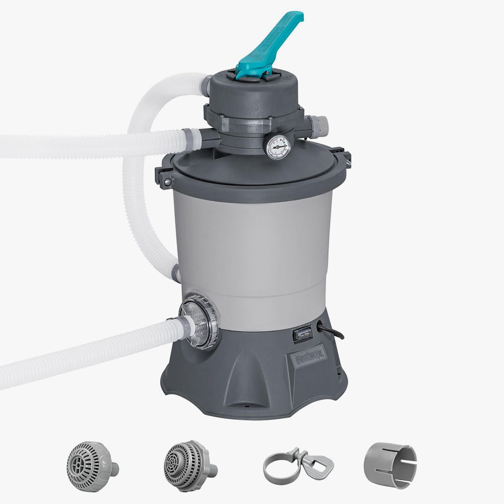 | Фільтруючий елемент (не входить до комплекту) | Кварцовий пісок №20 (0.45-0.85 мм) — приблизно 9 кг або Фільтруючі кульки Bestway Flowclear™ Polysphere (250 г) |