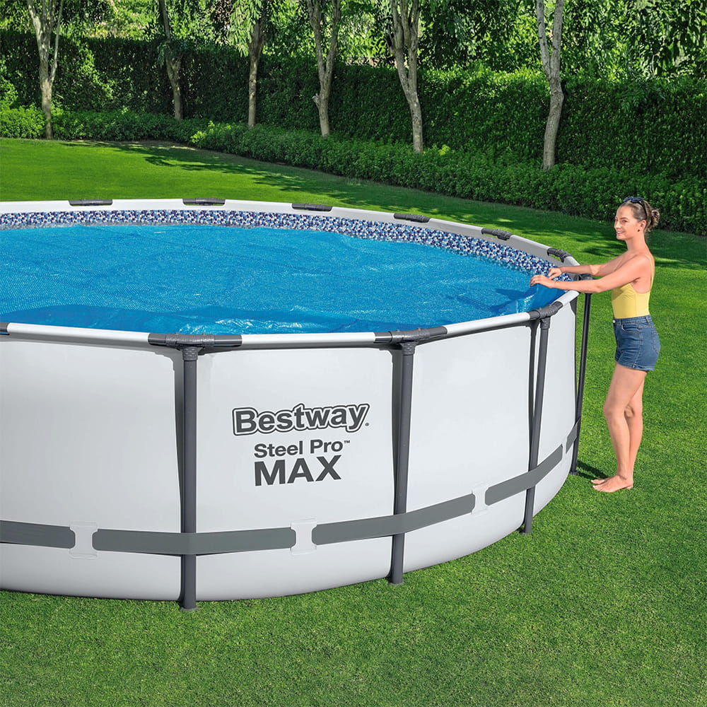 Використовуйте енергію сонця на повну! Bestway 58242 — це енергозберігаюче покриття, яке не тільки захищає ваш басейн від сміття, а й активно працює як природний нагрівач води, значно подовжуючи купальний сезон.